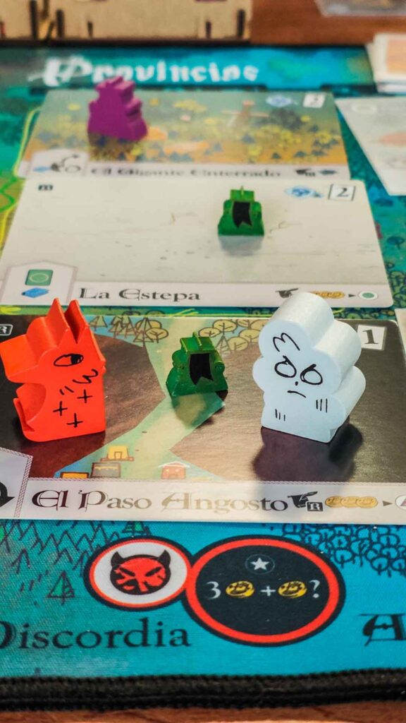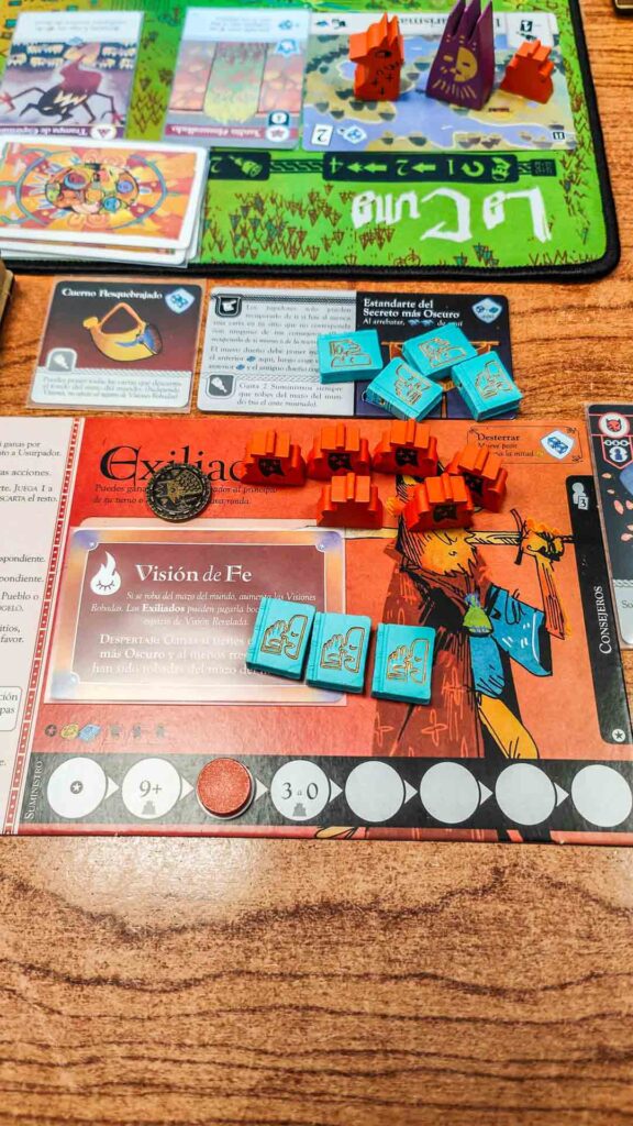 «A mi me gustó bastante, después de tanto comentario negativo, me esperaba algo más engorroso, y para nada. Es verdad que jugar con gente que ya sabe ayuda mucho, y David y Xer que ya controlan pusieron mucho de su parte para que la partida, tanto en explicación como en desarrollo fluyera. En seguida se pilla el rollo al buscar para conseguir cartas/favores, y en este punto los turnos van rápidos hasta… … hasta que alguien alcanza la condición de victoria y ya empiezan las maquinaciones, la cosa se ralentiza porque son muuuuuuuuuuuchas las cosas a tener en cuenta para que el otro no gané y que tu puedas ir acercándote a tu condición de victoria. En resumen, muy buena primera partida, y por supuesto para repetir otra vez.»