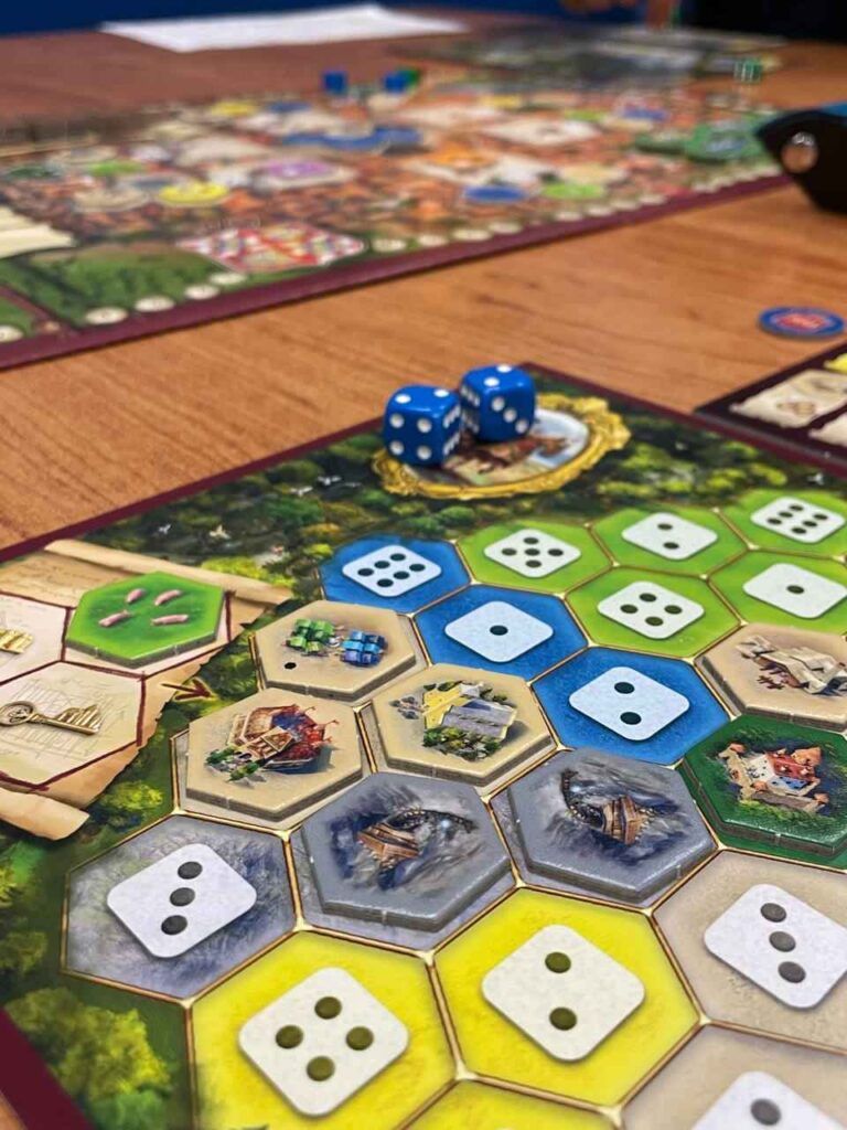 Juego clásico de colocación de losetas y gestión de recursos. Los jugadores desarrollan sus feudos en la Edad Media, compitiendo por construir castillos, criar ganado y comerciar eficientemente para ganar puntos de victoria.