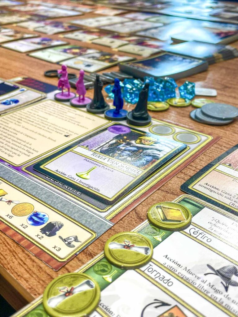 Argent the Consortium es un juego de colocación de trabajadores con elemento de engaño, donde los “trabajadores” son magos con habilidades especiales según su escuela de magia (Hechicería, Misticismo, Naturaleza, Divinidad, Planar).