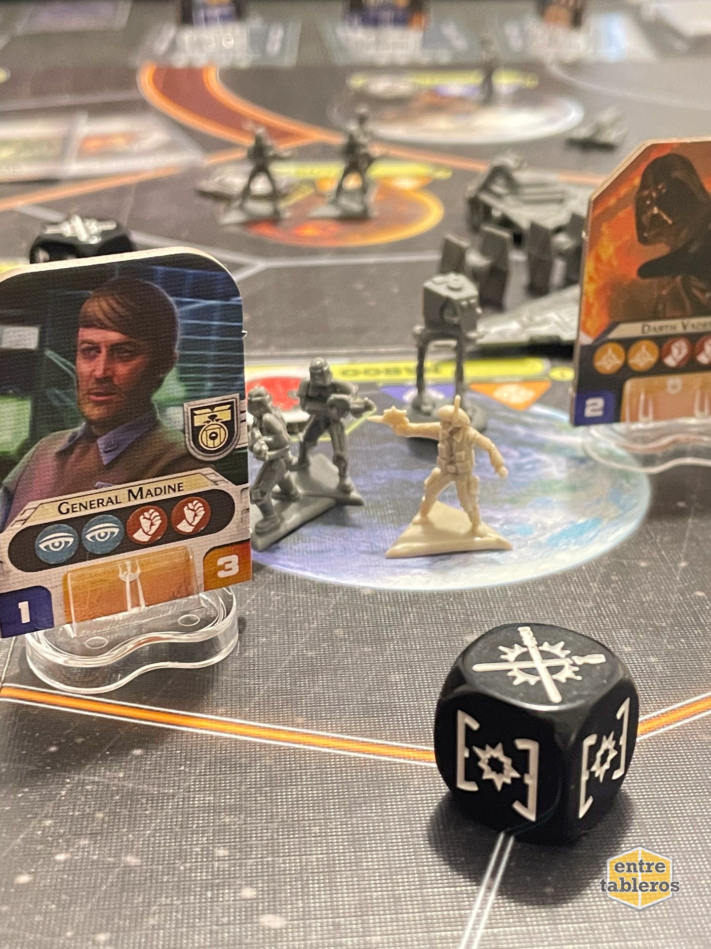 Lo primero que me llamó la atención fue lo impresionante del tablero y las miniaturas. Al abrir la caja, me abrumó un poco la cantidad de componentes: hay personajes icónicos como Darth Vader, Luke Skywalker (impresos en cartón), la Estrella de la Muerte… incluso cruceros y tropas terrestres que parecen sacados directamente de las películas (estos si son miniaturas de plástico).