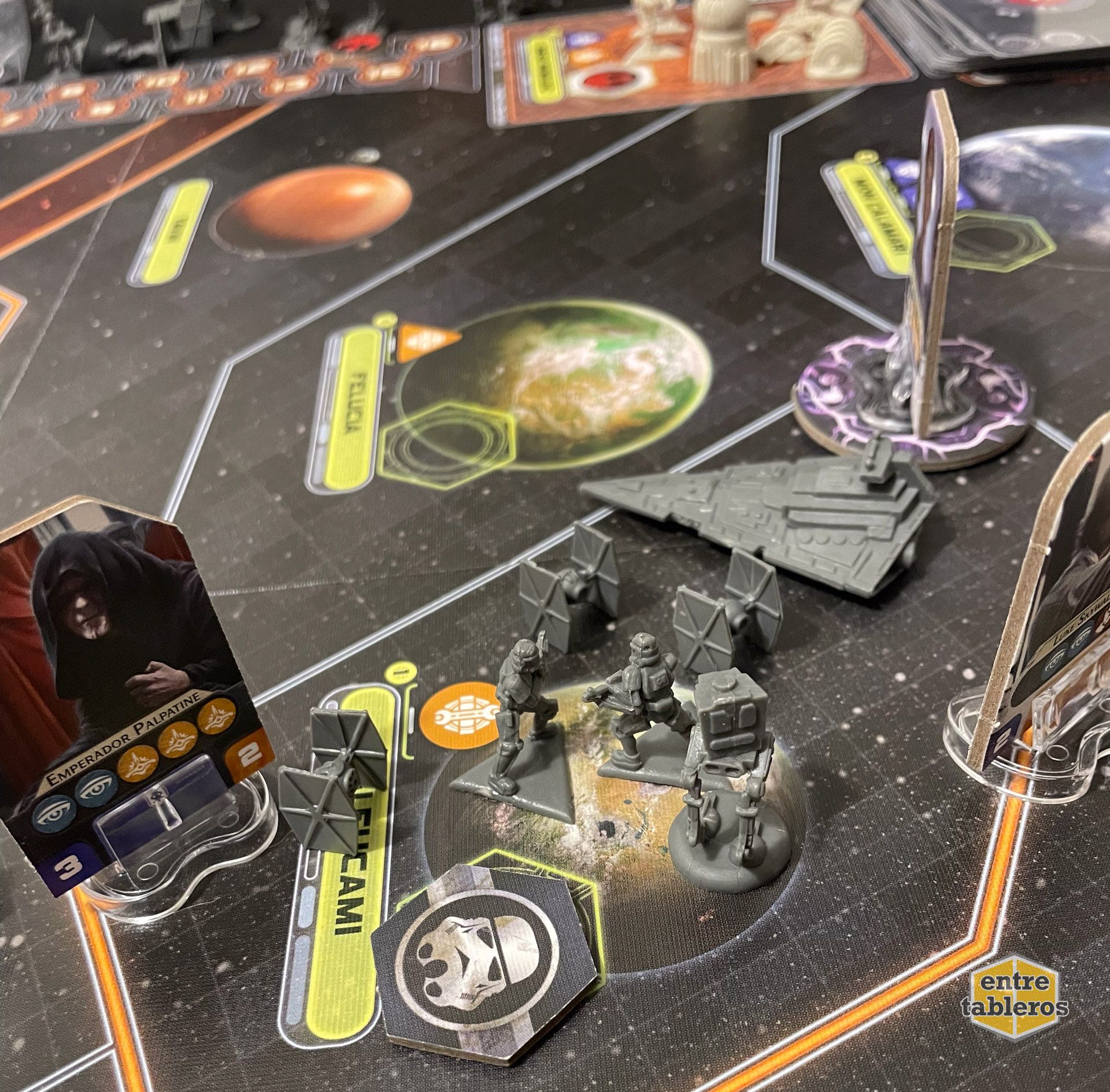 El juego es una verdadera obra maestra en cuanto a inmersión temática. Si eres fan de Star Wars, vas a sentir que estás viviendo las películas de nuevo, pero con la posibilidad de cambiar el destino de la galaxia. Yo elegí jugar como la Alianza Rebelde, y esa sensación de tensión constante al esconder mi base mientras intento desatar pequeños golpes contra el Imperio es muy emocionante. El Imperio, por su parte, cuenta con un poder militar avasallador, lo que se traduce en una cacería desesperada para acabar con la resistencia antes de que sea demasiado tarde. Cuando ves como la galaxia se va llenando de Destructores Estelares es dificil no acongojarse un poco.